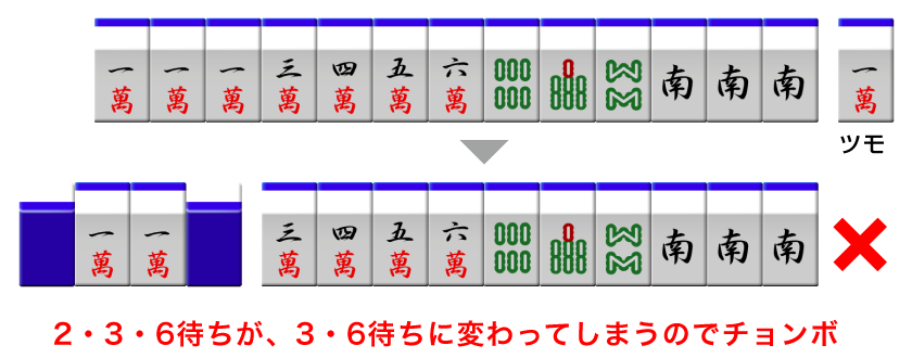 - 麻雀では、反則のことを”チョンボ”と呼びます。