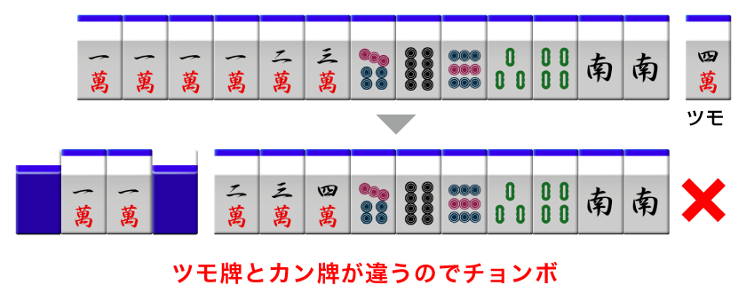 - 次のようなカンはチョンボとなるため「カン」ボタンは表示されません。